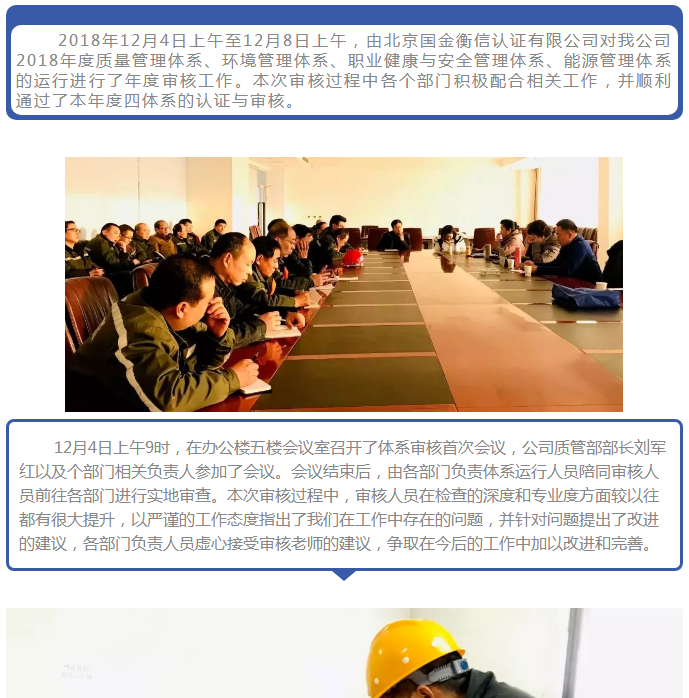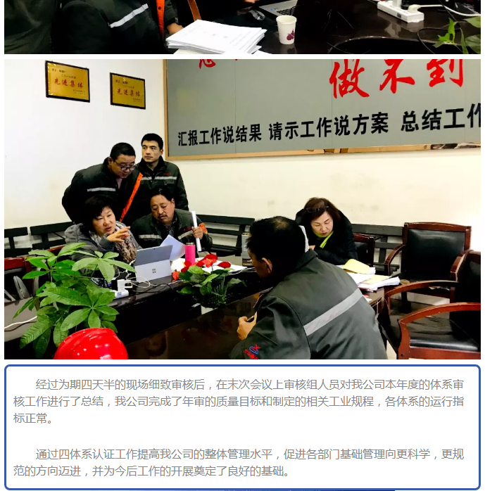 我公司順利通過2018年度四體系認證審核